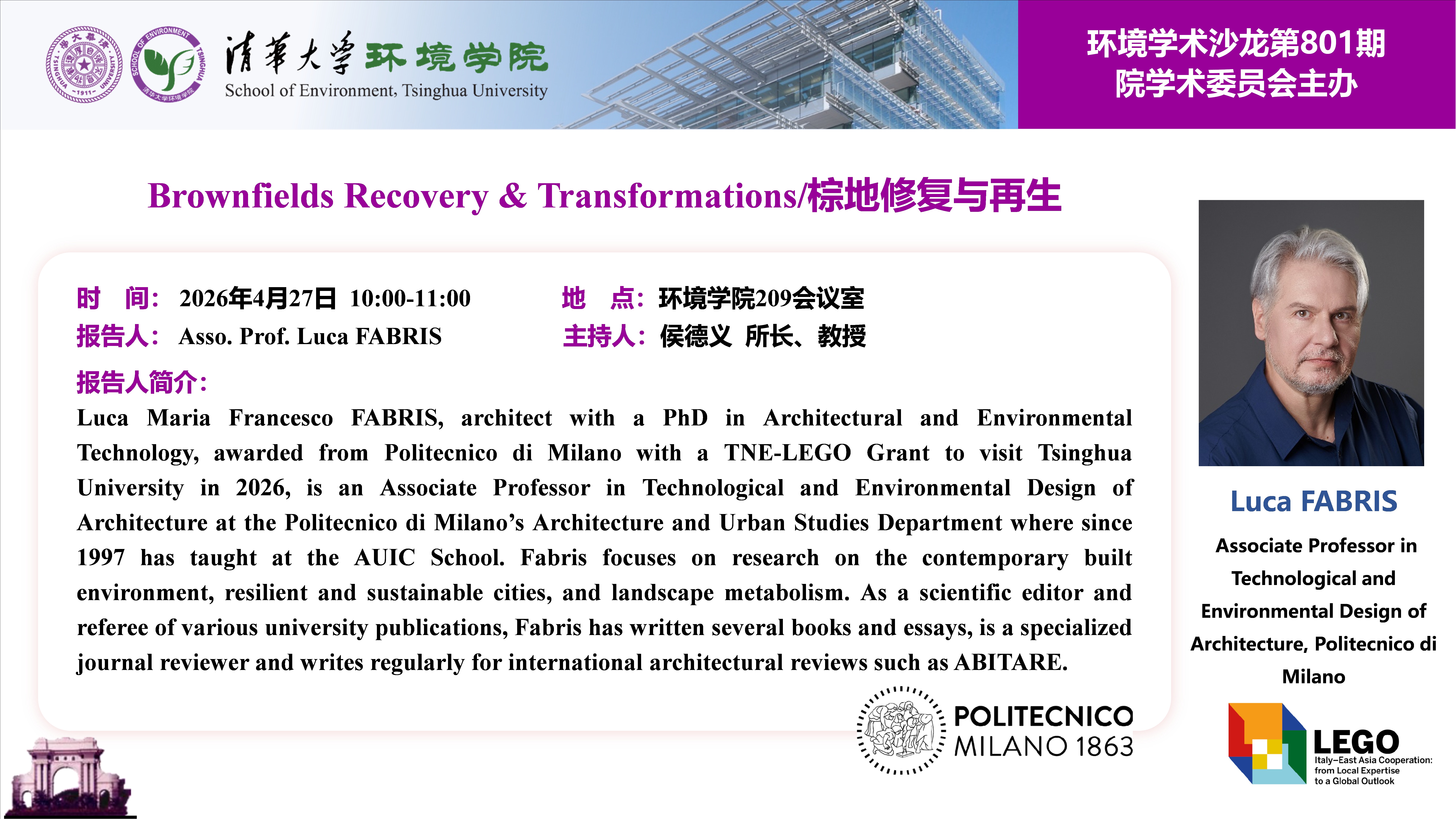 报告人:Luca Maria Francesco FABRIS, Associate Professor in Technological and Environmental Design of Architecture at the Politecnico di Milano