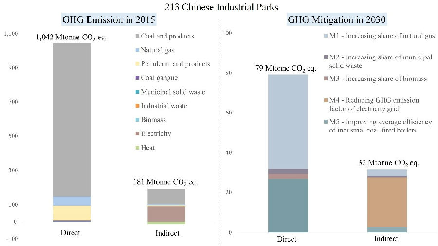 本研究基于生命周期视角,定量揭示了我国200余家国家级工业园区的碳排放特征,涵盖了燃料燃烧导致的直接排放和能源生产相关的间接排放,并进一步量化了园区能源消费升级的碳减排潜力。研究发现,这200余家园区在2015年贡献了全国GDP的11%和能源消费总量的10%,其直接和间接碳排放分别达10.4亿吨和1.8亿吨二氧化碳当量,二者约占全国碳排放总量的11%。通过优化能源消费,这200余家园区在2030年的碳减排潜力为1.1亿吨二氧化碳当量,其中提升天然气消费占比、降低电网碳排放因子和改善工业燃煤锅炉效率为最显著的减排措施。本研究可为工业园区的能源结构优化、能源基础设施升级和温室气体减排等管理决策问题提供科学依据。