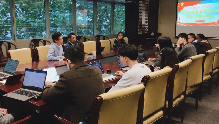 党委副书记席劲瑛老师主持,党委书记刘毅老师、学生工作组组长徐特以及参加七十周年国庆专项活动的十多名老师、本科生和研究生出席本次活动。