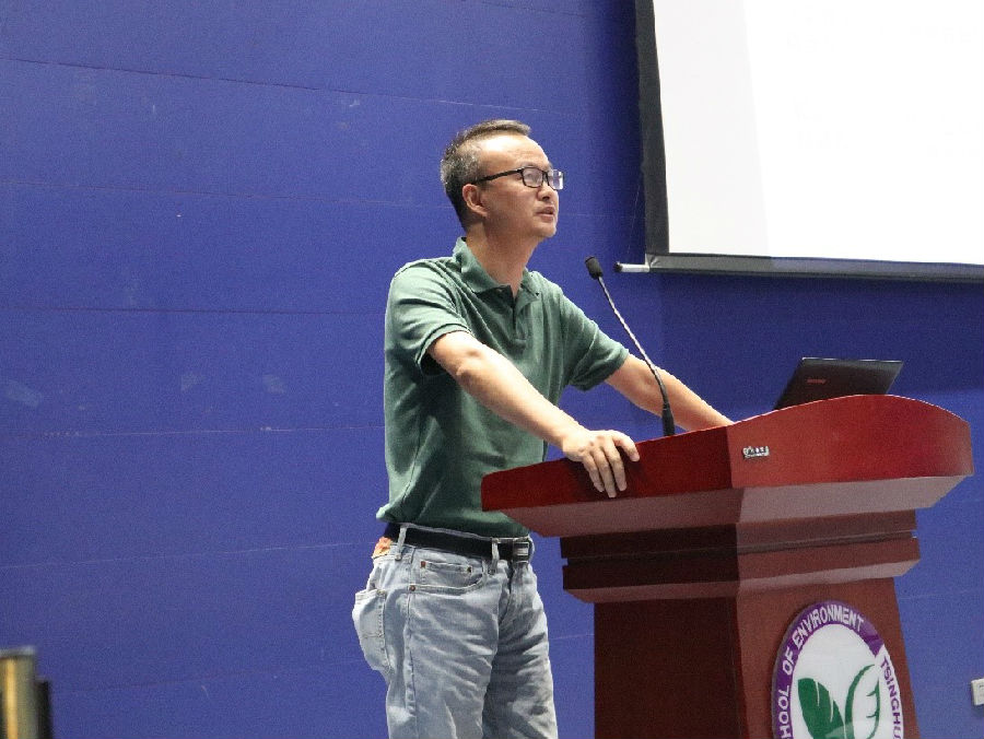 表示热烈的祝贺。随后,钱老师指出当前国家对环境保护和生态文明高度重视,同学们身处一个前所未有的好时代。同学们应当有情怀、有担当,从老一辈人手中接过接力棒,努力成为引领环境保护事业的中坚力量,继续“热爱我环境,光大我事业”。