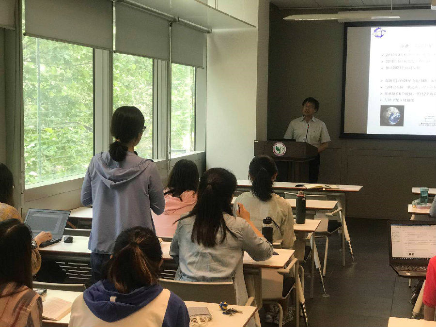 申旭辉研究员首先介绍了世纪之交国际学术界对地震能否预测开展的大讨论。随后,申旭辉研究员开始逐一介绍了张衡一号卫星在轨运行概况、全球地球物理场的环境探测、卫星环境的应用资源与现状以及卫星环境应用的几点思考。张衡一号卫星是电磁监测试验卫星,也是中国地震立体观测体系第一个天基平台,同时是中国地球物理层探测卫星计划首发星。目前卫星在轨工作状态良好,各项功能指标达到国际同类卫星同期水平,甚至达到国际领先水平。卫星在轨运行以来,首次取得了完全自主知识产权的全球地磁图和电离层状态图等战略信息资源。有效接收到了全球地面人工发射源信号和多个磁暴及7级以上地震扰动信号,初步验证了地球岩石层-大气层-电离层耦合机理,为进一步开展地震监测预测试验和相关科学研究奠定了基础。讲座结束后,在场师生踊跃提问,气氛热烈,与申旭辉研究员进行了深入的沟通与交流。