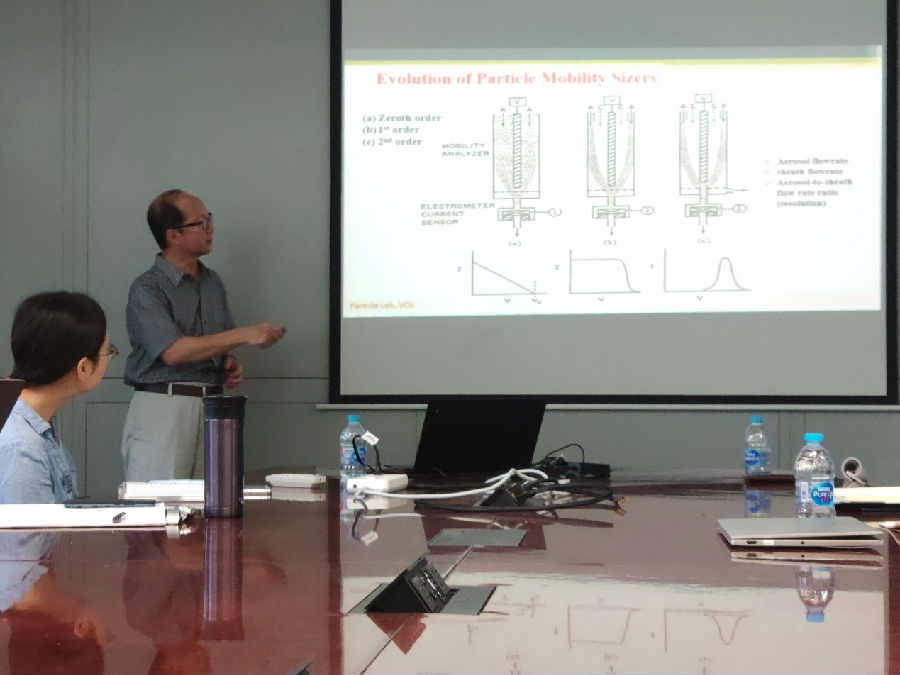 2019年5月21日电(通讯员 陈小彤)5月17日上午,美国弗吉尼亚联邦大学讲席教授、清华大学讲座教授Da-Ren Chen做客成人自拍视频第494期,做了题为《测量细颗粒物和超细颗粒物的小型化电迁移率粒径谱仪》(Miniaturization of electrical sizers for fine and ultrafine particles)的学术报告。本次沙龙由大气污染控制教研所蒋靖坤教授主持,30余名师生听取了报告。