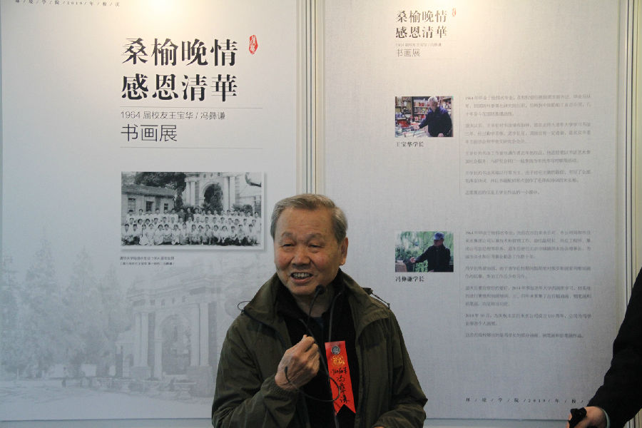 冯彝谦1964年毕业于给排水专业,先后在市自来水公司、市公用局和市自来水集团公司从事技术和管理工作,为城市供水和公用事业勤恳工作数十年。冯学长致辞中表示,在校期间就对油画十分热爱,但参加工作后少有习作。直到退休后才重拾曾经的爱好。近三、四年累集创作了近百幅油画、钢笔画和铅笔画。他表示在清华不仅学习了知识,更重要的是清华在精神层面给予自己的激励,他将终生以此为傲。