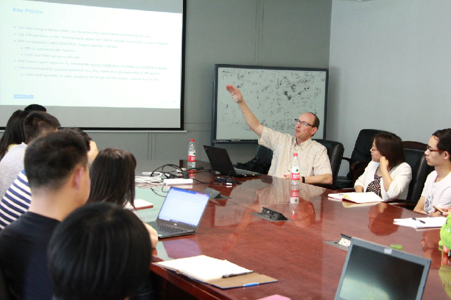 Yarwood博士主要介绍了路径积分法(PIM)的原理和应用。Yarwood博士提出,PIM可以确定各个来源的贡献,专注于与排放控制策略相关的“人为增量”。PIM补充了CAMx OSAT / PSAT“标记物种”方法,在数学上是严格的。将CAMx模型应用于臭氧的PIM“控制路径”,证明了非线性系统中源的贡献不是唯一的,PIM适用于气态污染物(臭氧、二氧化氮、醛类)和PM物种。讲座结束后,Greg Yarwood博士与到场的师生进行了深入的沟通与交流。