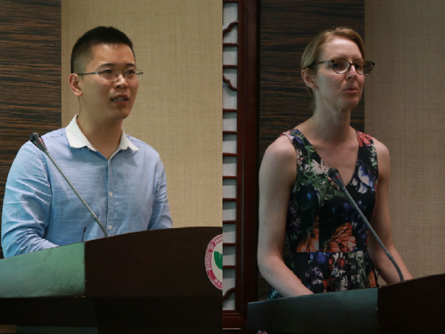吴烨老师宣读了获奖学生名单。博士生特等奖获得者蒋永、2015年硕士生特等奖获得者史凯特分别代表本届及往届获奖学生发言,分享了获奖感受和学习、科研体会,并向哈希公司表示了衷心感谢。