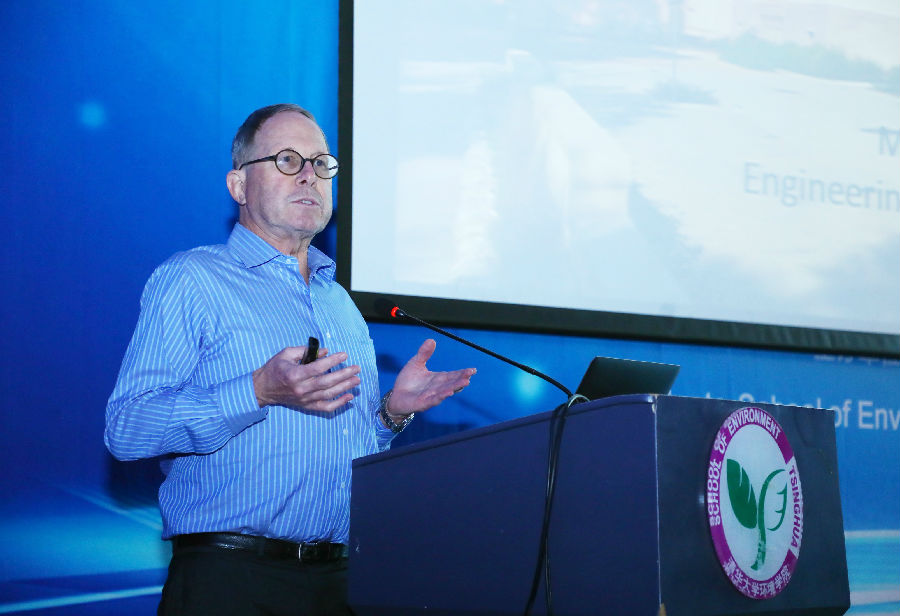 John. C. Crittenden教授作了题为《“巨型技术”:发展可持续城市基础设施以解决十亿吨级环境问题》(Gigatechnology: Developing Sustainable Urban Infrastructure to Solve Gigaton Problems)的学术报告。Crittenden教授指出,当前全球面临碳、氮的大量排放和过度依赖不可再生材料等可持续发展问题,需要相应的工程技术来解决。他随后介绍了基础设施生态学及其新特征。基础设施生态学将城市作为一个能自适应的复杂生态系统,其特征包含了社交、经济、环境以及建筑方面的不同内容,是一个复合体系。为实现可持续的目标,Crittenden教授列举了一些具体措施,如对分散热力系统的热损失捕集、雨水收集、屋顶绿化、提高可步行性等,并通过模型分析了可持续基础建设设施的效益和与社会、经济、资源之间的联系。此外,他还展望了未来研究方向,如改进的分散式热力采集系统、城市建筑能量模型、超过50种技术形成的设计平台及其协同作用等,希望能使未来的城市变得更为宜居且可持续。