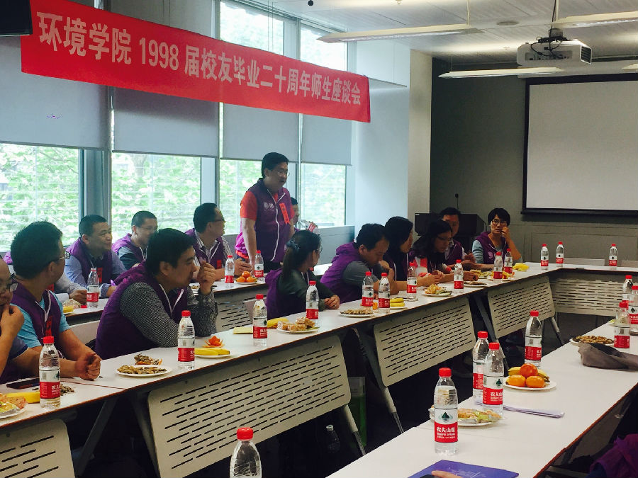 座谈会上,曾任98届毕业生班主任的刘翔教授与校友们进行了会谈,肯定了大家为环境事业所作出的贡献,同时希望大家能够把握住时代良好的发展机遇,为祖国健康工作五十年甚至是六十年、七十年。刘翔也向校友们表达了他的美好祝愿,并希望大家友谊长存、时常相聚。