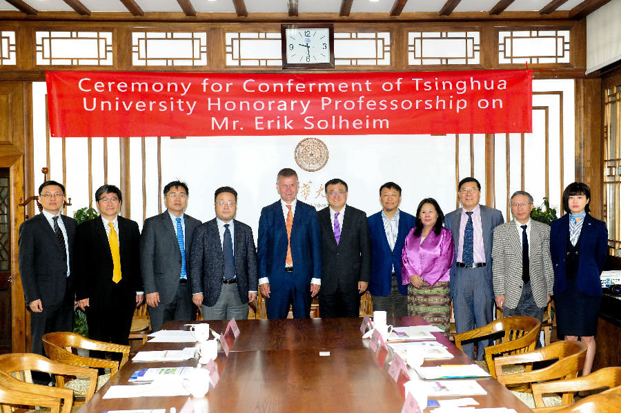 杨斌表示,埃里克·索尔海姆先生在国际环境领域享有很高的名望,并且一直关心和支持清华大学的发展。此次授予埃里克·索尔海姆先生名誉教授也是清华大学的荣誉,希望索尔海姆先生以后常来清华,与更多的清华师生交流。