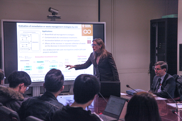 Baciocchi教授对污染场地、立法方法和欧盟与意大利所采取的管理经验进行了综述。通过呈现欧洲250万个潜在污染点位和意大利污染场地的数据(40个全国优先点位,覆盖160公顷陆地面积和130公顷海洋面积),讨论了现行的立法框架,为欧盟水框架指令(EU Water Framework Directive)、欧盟环境损害指令(EU Directive on Environmental Damage)提供参考价值。此外,Baciocchi教授回顾了过去20年意大利在污染场地立法框架上的变革过程,指出人体健康风险评价在识别修复需求和完成最终清理目标方面的关键作用。最后介绍了欧盟和意大利污染场地管理的通常做法及其所在研究组在新特性与净化技术方面的研究。Costa重点介绍了如何利用LCA方法对污染修复与污染管理技术进行评价,以及废物焚烧底灰的管理,污染治理中碳捕集、碳封存和碳利用(CCUS)相关的内容。在讲座结束后,Baciocchi教授和Costa研究员与到场师生进行了深入的沟通与交流。