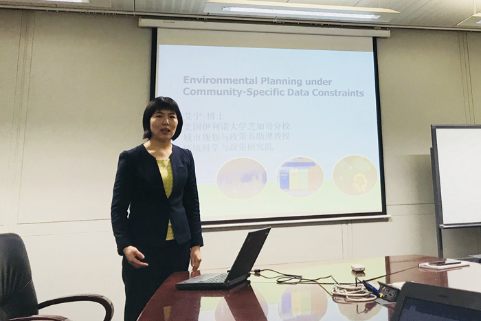 2017年12月18日电(通讯员 丛薇)12月14日上午,美国伊利诺伊大学芝加哥分校助理教授 艾宁博士做客成人自拍视频第401期,做了题为《社区尺度数据限制下的环境规划》(Environmental Planning under Community-Specific Data Constraints)的学术报告。本次沙龙由环境管理与政策教研所石磊副研究员主持,10余名师生听取了报告。