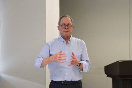 余刚教授首先回顾了Hoffmann教授在四十多年学术生涯中取得的成就。Hoffmann教授是国际知名的环境工程和环境化学家,他在大气化学、环境催化、高级氧化等领域作出了令人瞩目的成绩,ISI H指数为83,ISI 引用高达30000余次,单篇引用高达10000余次。余刚教授还介绍了Hoffmann教授设计并开发的ECO-SAN太阳能自循环生态厕所,该设施目前在中国宜兴和南非已投入使用。Hoffmann教授作为教育部海外名师项目专家,在清华大学开展了一系列教研工作,如参与《高级环境化学》课程授课、参与全球环境国际班高端访谈活动等。