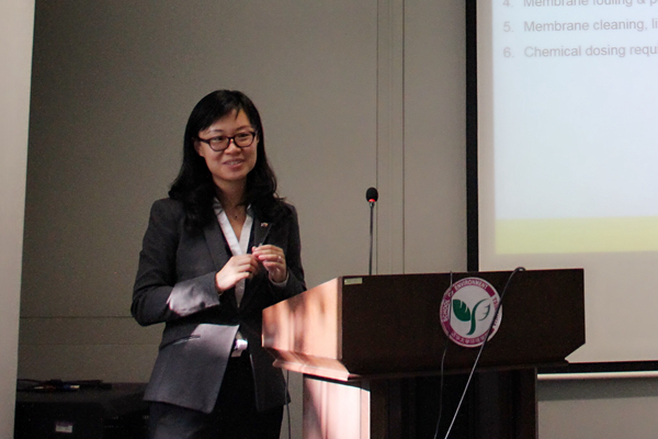 Wang Yuan博士重点介绍了她在运用计算流体力学(CFD)设计和优化水处理的膜系统方面的研究工作。Wang Yuan博士详细阐述了膜系统的设计要领,包括膜的构型、运行条件(错流速率、流动模式等)、膜污染、膜清洗、膜的生命周期、能量消耗、反应器设计、过程效率等诸多因素。然后,Wang Yuan博士解说了利用RO Projection软件使浓差极化和结垢现象最小化及所需的元素信息,如进水水质、膜材料种类的选择、流量均衡、pH控制和防止结垢等。每一种膜元素都需要在一定的限制范围内运行,才能使浓差极化最小化,防止物理损伤。最后,Wang Yuan博士还演示了商业CFD软件用于流体模拟的运用过程,从发现问题-预处理-解决问题-后处理这四个步骤来详细解说其如何设计和优化膜系统。在讲座结束后,Wang Yuan博士与到场的师生进行了深入的沟通与交流。