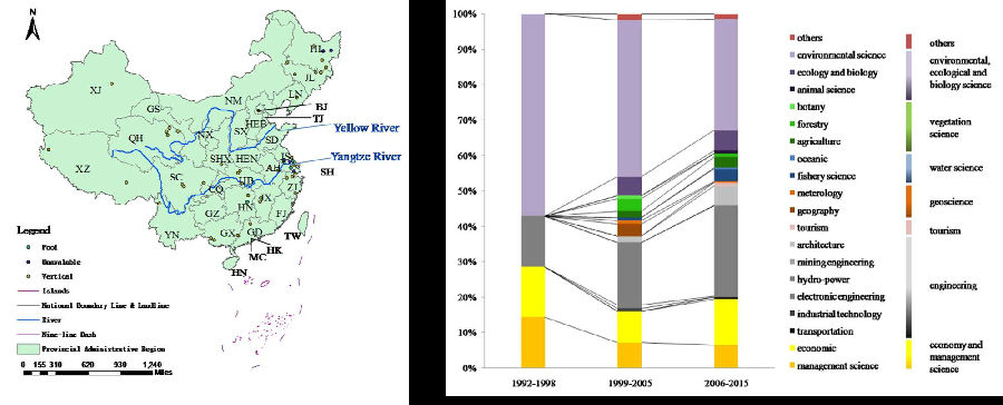 Environment International上发表的《中国水利工程生物多样性保护进展:综述》(The Development of Biodiversity Conservation Measures in China's Hydro Projects: A Review)(文章链接://doi.org/10.1016/j.envint.2017.09.007),集中展示了中国近40年来水利水电项目中生物多样性保护工程的重点技术、法律法规与学术研究的发展趋势。这篇文章根据团队于去年在该刊发表的《中国生态影响评价发展进程》(The Development of Ecological Impact Assessment in China)(文章链接://doi.org/10.1016/j.envint.2015.08.004)一文基础,利用时空分析、文献和专利计量等定量综述方法,就水利工程对生物多样性影响中国采取的措施技术,进行了扎实全面的解析和评价。提出了发展水利水电工程环境认证体系、加强国家框架,以及完善上下游合作机制与监管机制等具体政策建议。文章对平衡清洁的水利能源开发与生物多样性保护,这一长期环境经济争议话题,从生态系统和行业发展角度给出思路。