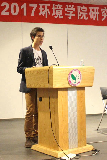 典礼还邀请了三位学生代表发言。魏志谋作为在校生代表,鼓励新生作一名优秀的清华人,以热爱为动力,为国家的环境事业奋斗终身。2017级研究生新生代表张宇婷通过分享暑期团校的经历,表达了努力学习、专心科研、承担时代使命的决心。来自法国的Nicolas Mangin代表留学生新生发言,他希望留学生在钻研学术的同时,能够与中国同学们有更多的交流,以更深地融入中国文化。