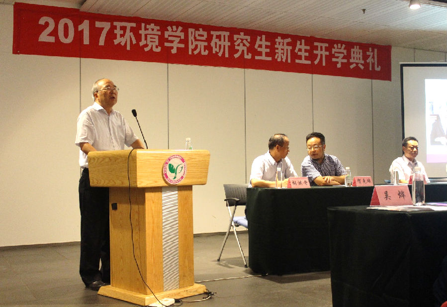 郝吉明院士、院长贺克斌院士、院党委书记刘毅、清华大学研究生院副院长胡洪营等教师代表们出席典礼,副院长吴烨主持典礼。