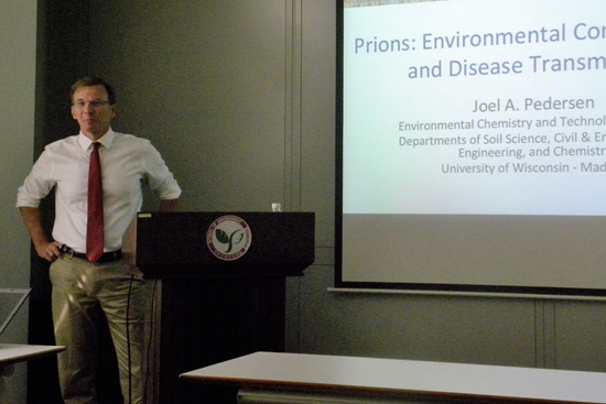 2017年09月8日电(通讯员 邱玉)9月7日下午,美国威斯康星大学麦迪逊分校教授Joel Pedersen做客成人自拍视频第371期,作了题为《朊病毒的环境污染与疾病传播》(Prions:Environmental contamination and disease transmission)的学术报告。本次沙龙由饮用水安全教研所陈超副研究员主持,20余名师生听取了报告。