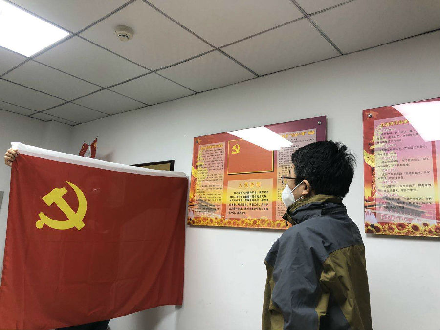 党委也紧接着召开党委会进行审批,党委委员全票赞成地下水党支部通过张大奕同志入党的决议。随后,院党委书记刘书明宣读了党委会决议,决议认为“张大奕同志拥护党的领导和各项方针政策,以党和人民的事业为重,坚持在武汉疫情最前线开展工作,表现出不畏艰险,无私奉献的精神,是优秀青年骨干教师的代表,具备党员条件,入党手续完备,经院党委讨论,同意接受张大奕同志为中共预备党员。”审批会后举行了入党宣誓仪式,刘书明同志领誓,张大奕同志面对党旗宣誓,与会全体党员重温入党誓词。