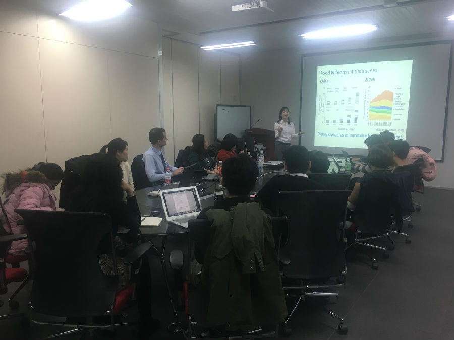 Matsubae教授首先介绍了日本城市矿山的产生和利用现状,随后介绍了日本经济的物质流情况,并着重介绍了磷元素流,继而以汽车的回收为例,介绍了整个回收过程、参与者、成效和存在的问题,Matsubae教授介绍了物质流分析方法和实验方法各自的作用,并强调了最小化各种珍贵元素的流失的重要性。TRENCHER博士从氢的生产和利用路径开始,对日本和国际社会发展新能源和脱碳的努力进行了对比,随后介绍了多个案例,从工业生产到日常生活消费,指出日本当前所做的尝试成本和风险都较高,和德国的低风险方法形成了对照,同时可再生能源成本的直线下降也可能会对化石能源加碳捕集储存的传统逻辑形成挑战。Oita博士基于氮足迹分析,介绍了日本氮元素的物质流动情况,并介绍了两种不同的减少氮消耗的做法,一种是基于消费,另一种是基于供应链,前者侧重于消费者的饮食结构,后者则希望提高生产中的氮利用效率。每场讲座结束后,在场师生均踊跃提问,气氛热烈,与三位嘉宾进行了深入的沟通与交流。