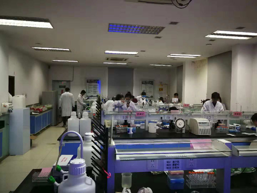 10月16-23日,参赛选手利用网络和微信平台完成了50道笔试题竞答。11月8日下午,实验操作比赛在教学实践中心A102实验室进行。实验操作试题为水质氯化物、高锰酸盐指数和DNA提取三个项目,比赛过程持续了3个小时,现场7位评委老师对15位参赛选手的操作细节和实验报告进行了审核及评分。