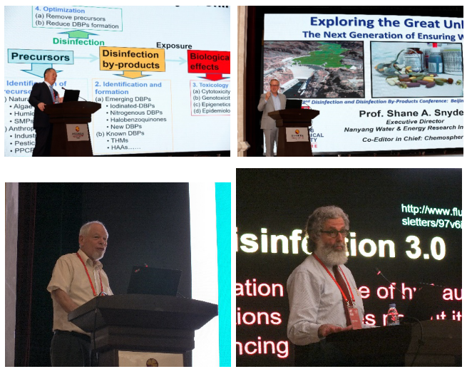 院士江桂斌,新加坡南洋理工大学教授Shane Snyder,美国加州大学洛杉矶分校教授Mel Suffet,美国德克赛尔大学教授Charles N. Haas做大会报告