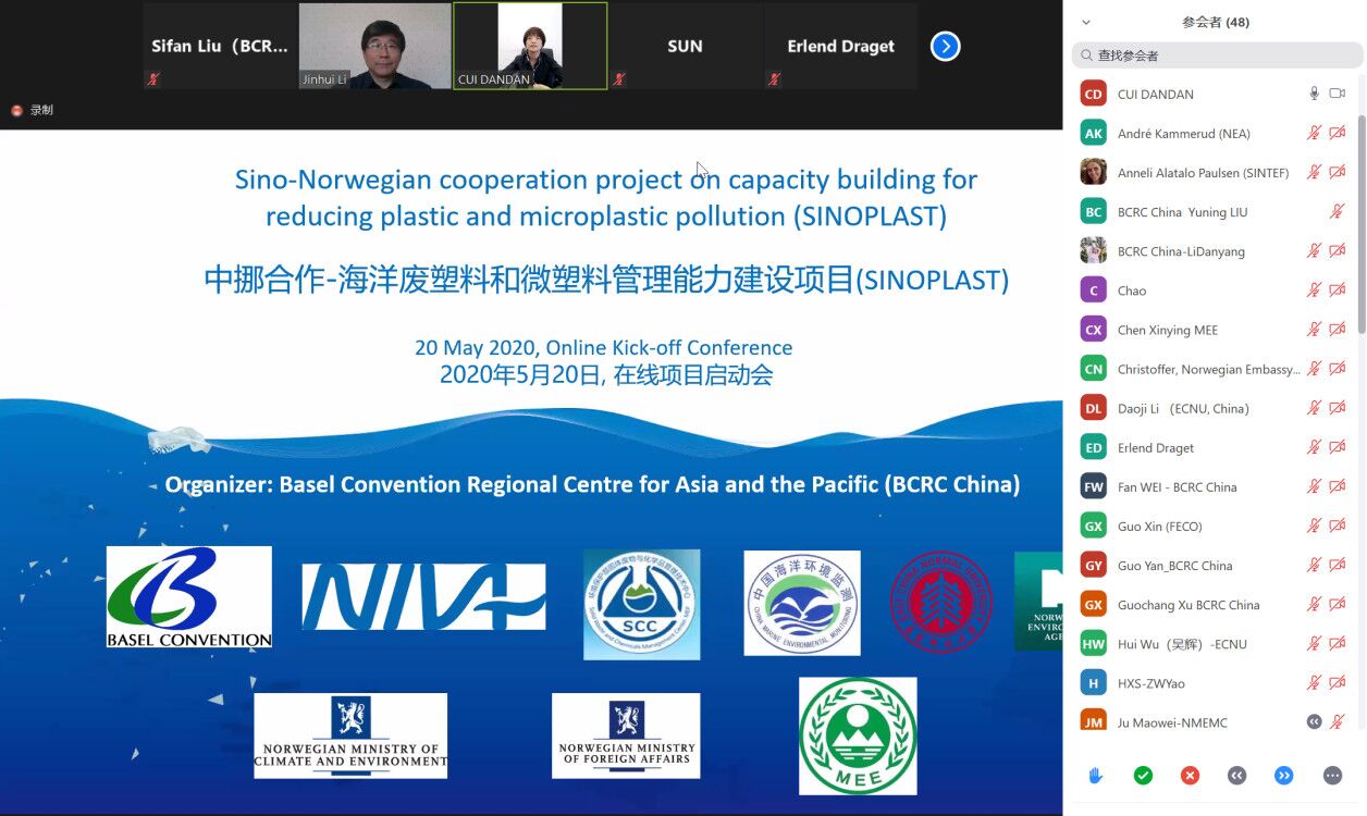 5月22日电(通讯员 陈源、柳思帆)5月20日,“中挪合作——海洋废塑料及微塑料管理能力建设”项目(以下简称“项目”)启动会暨项目年度会议在线召开。会议由巴塞尔公约亚太区域中心(以下简称“亚太中心”)组织,项目参与单位共58名代表参会。