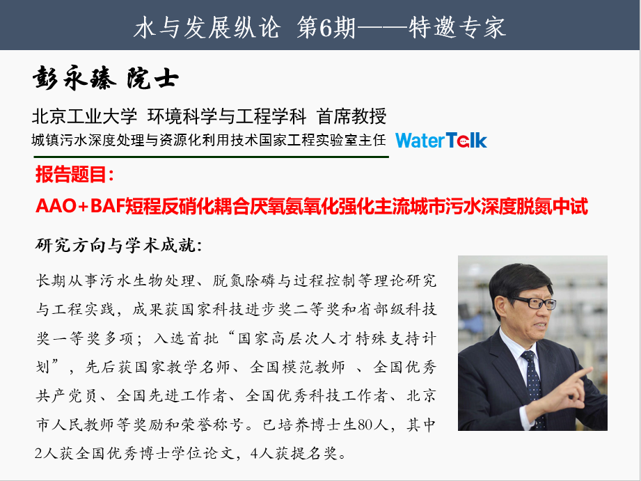 等9所高校承办的“水与发展纵论(WaterTalk)”第6期以网络会议形式举行。中国工程院院士、城镇污水深度处理与资源化利用技术国家工程实验室主任、北京工业大学教授彭永臻作了题为“AAO+BAF短程反硝化耦合厌氧氨氧化强化主流城市污水深度脱氮中试”的学术报告。成人自拍视频-国产自拍成人