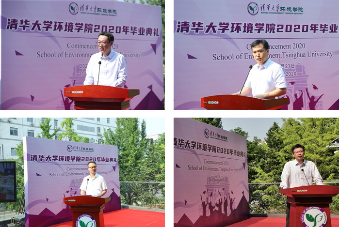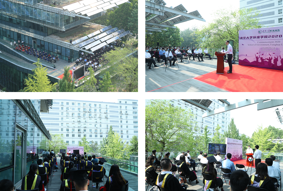 在中意节能楼室外平台举行了2020届研究生、本科生毕业典礼。在疫情防控的特殊时期,为了给毕业生在清华园里的时光留下完整而温馨的记忆,典礼采用线上和线下相结合的方式式,院长刘毅、院党委书记刘书明等19名教师和77名返校毕业生出席了典礼现场。钱易院士、郝吉明院士、曲久辉院士、贺克斌院士与165名毕业生、教师、亲友等同时在线参加了“云典礼”。毕业典礼由院党委副书记席劲瑛主持。