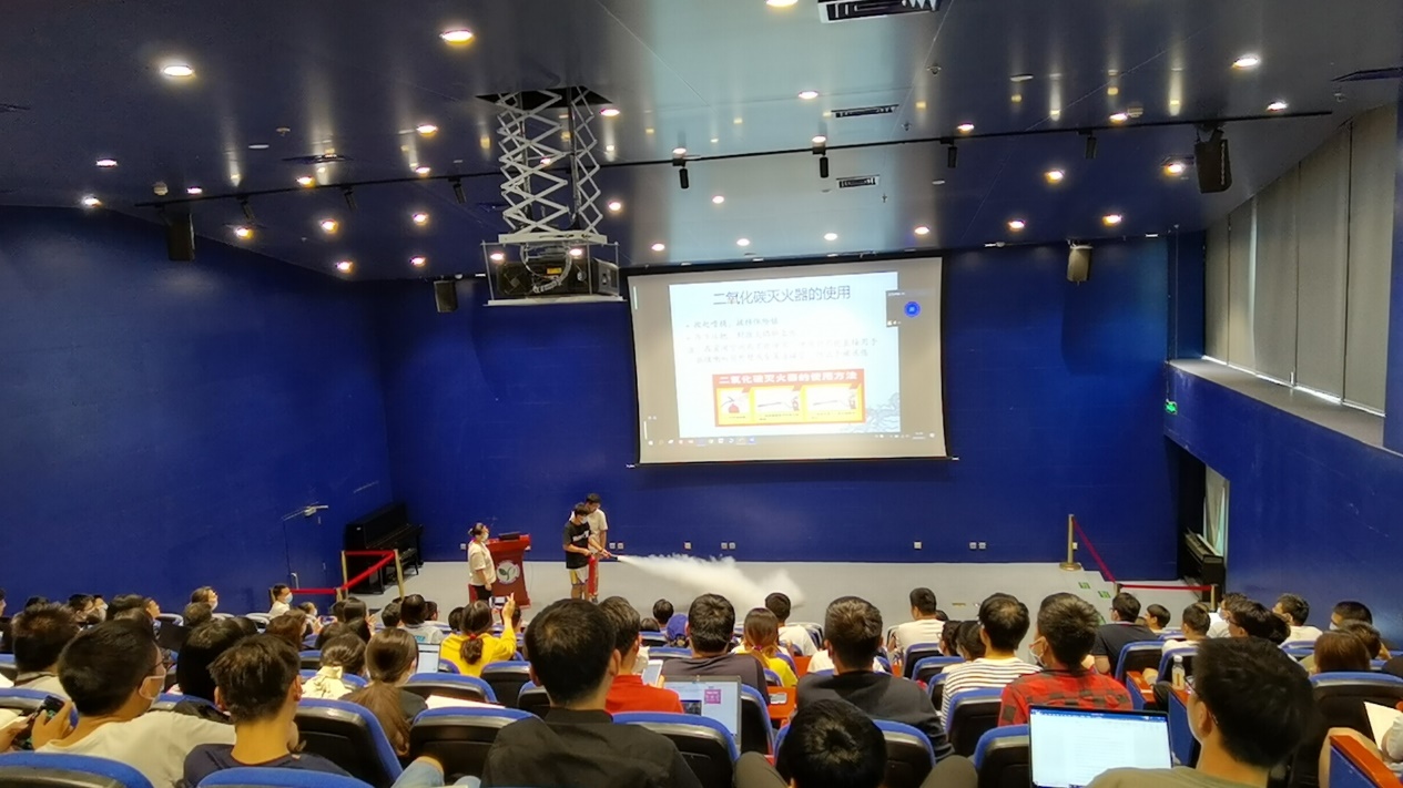 本次培训主要围绕消防安全和实验室安全两部分展开。资产处赵家杰对火灾事故案例、楼宇消防安全设施、消防逃生方法等内容做了生动详细的讲述,并现场演示二氧化碳灭火器和逃生面具的使用,学生积极参与,培训效果显著。安全助理田辉向新生介绍了成人自拍视频