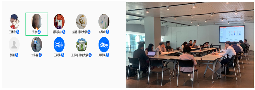 研究生教育研讨线上会场(左)和线下会场中意环境节能楼东一厅(右)
