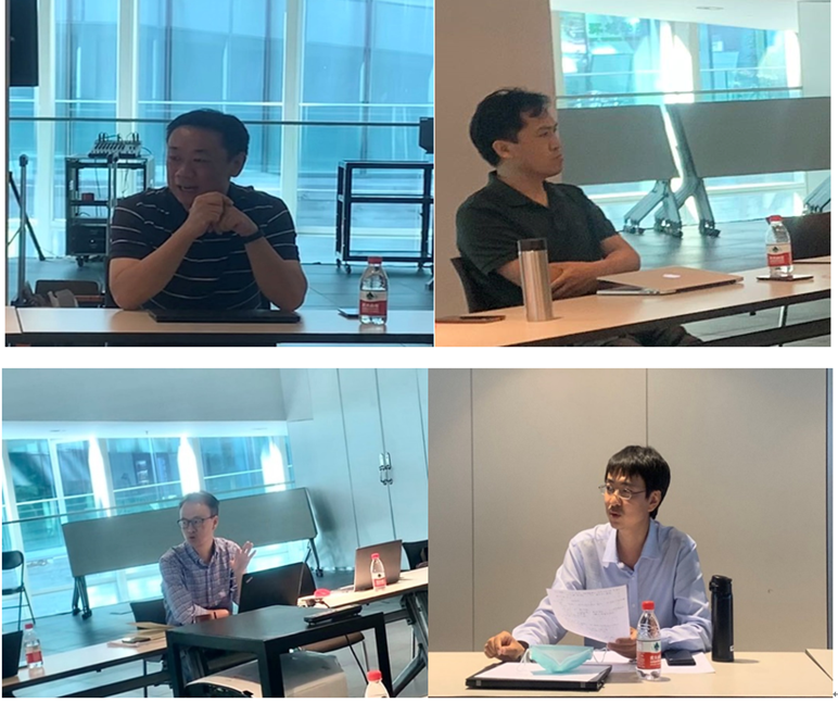 与会教师现场讨论(从左至右、从上至下依次是刘毅、刘书明、吴烨、张潇源)