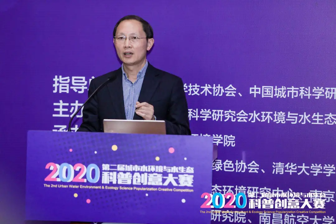 余刚教授代表水分会致辞,强调了科普工作的重要性并充分肯定了水分会前期开展的科普工作。他表示,本次大赛创新性地设置了“污水是资源,污水厂是资源工厂”的主题,并且积极探索科普作品与企业发展相结合,必定可以更好地推动作品传播,使公众获得更好的科普教育。