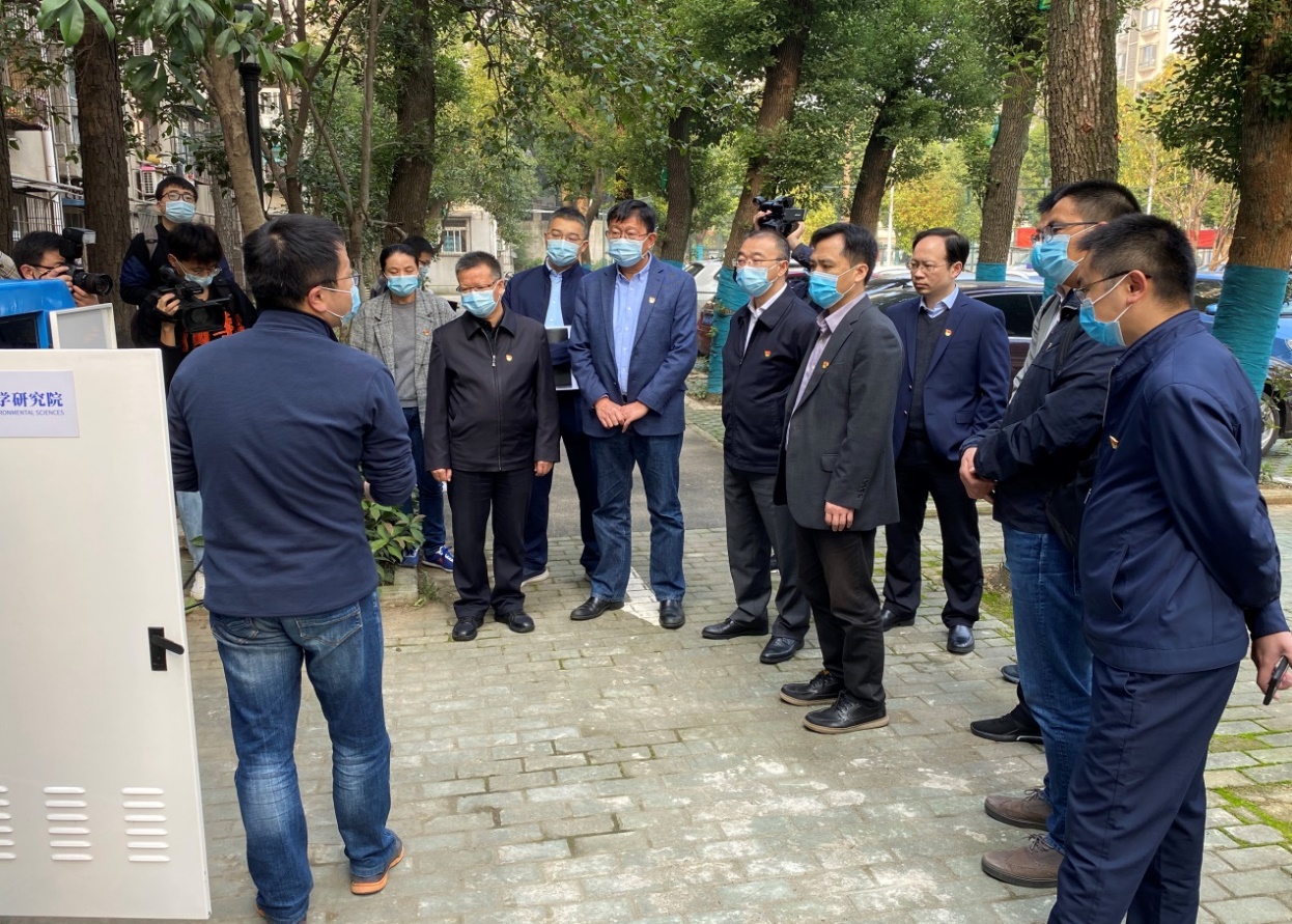 主题党日活动首先进行了参观学习环节。在湖北省生态环境厅副厅长李瑞勤、机关党委专职副书记孙斌、湖北环科院党委书记兼院长蔡俊雄的带领下,现场与线上党员同步参观了湖北省环境科学研究院。该院工作人员向与会党员展示了大气光化学研究平台、大气气溶胶观测平台、VOCs及机动车遥感观测平台等一批先进的环境监测和研究设备。工作人员着重介绍了在疫情中消毒剂极度短缺的情况下,依托中国工程院《新型冠状病毒感染的肺炎疫情环境风险防控》攻关项目中子课题“社区建筑排水非集中隔离治疗潜在感染人群排放污水风险控制技术”,开发研制了用于社区建筑排水单元应急的次氯酸钠发生器。该设备具有小型化、精装化和自动化等特点,能够满足社区公共环境的病毒消杀工作需求。