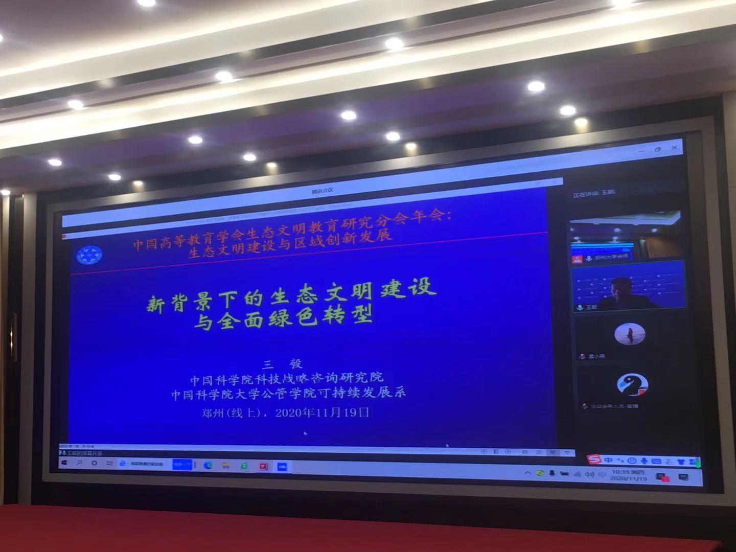 2020年11月20日电 11月19日,中国高等教育学会生态文明教育研究分会2020年年会在郑州市黄河迎宾馆召开。本次年会的主题是“生态文明建设与区域创新发展”,年会由中国高等教育学会生态文明教育研究分会和郑州大学主办。
