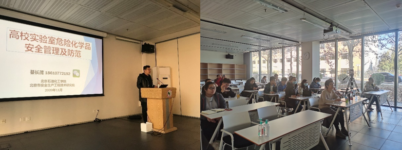、北京市安全生产工程技术研究院綦长茂高级工程师做《高校实验室危险化学品安全管理及防范》专题报告,实验室处苗豪梅老师出席。